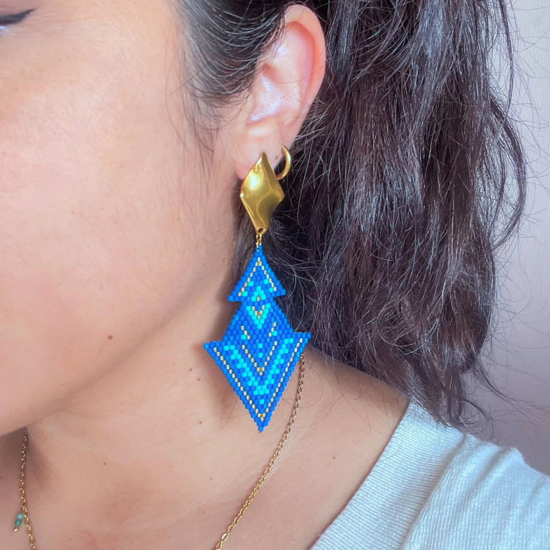 Los tejí con la técnica Miyuki, colocando mostacilla por mostacilla para crear este diseño vibrante y poderoso. Me tomó varias horas darles forma, pero cada minuto valió la pena: quedaron únicos, intensos y llenos de energía.