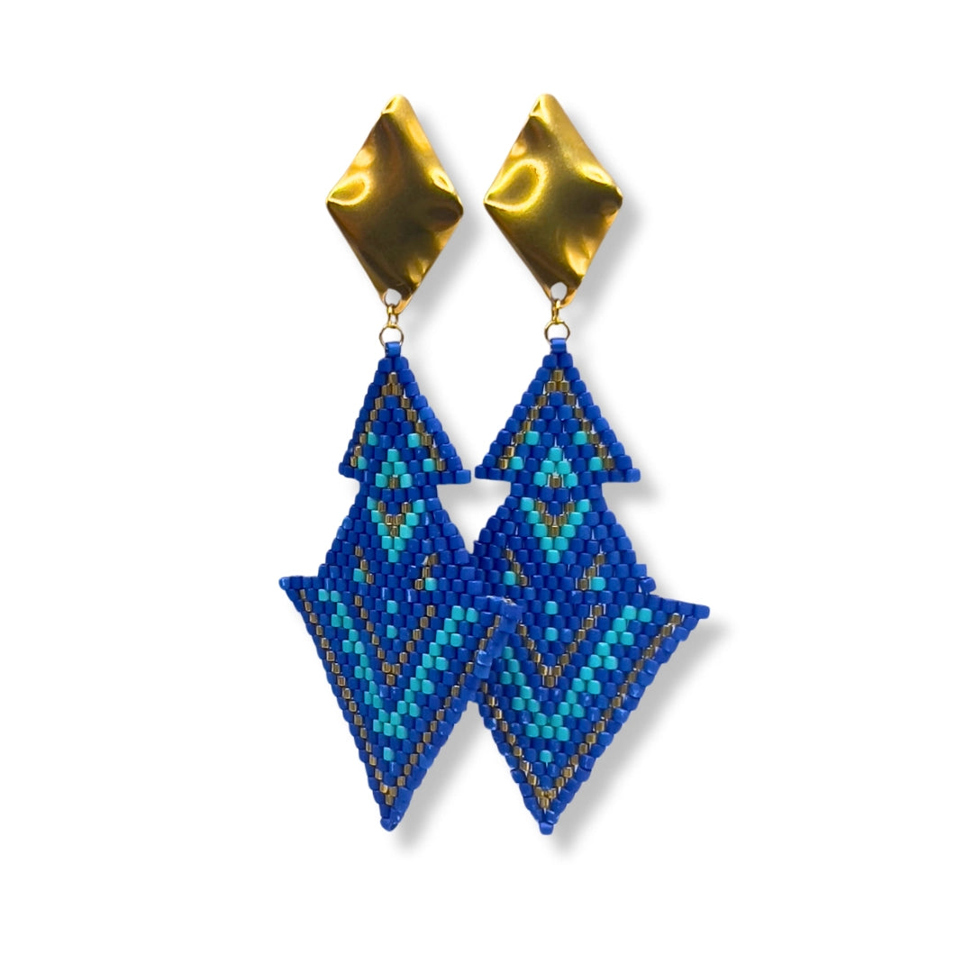 Aros Miyuki Diosa Maya Azul Bañados en oro 18k