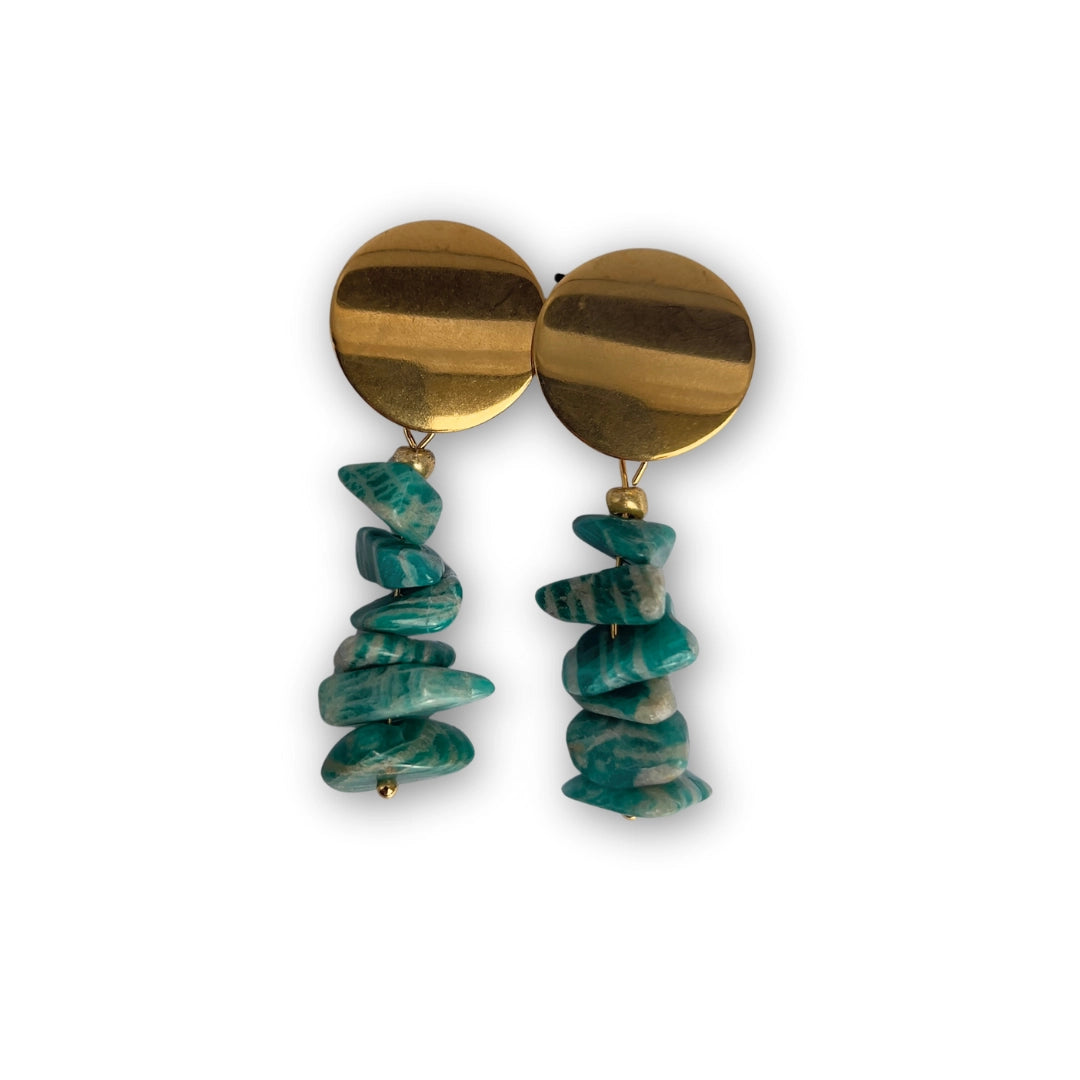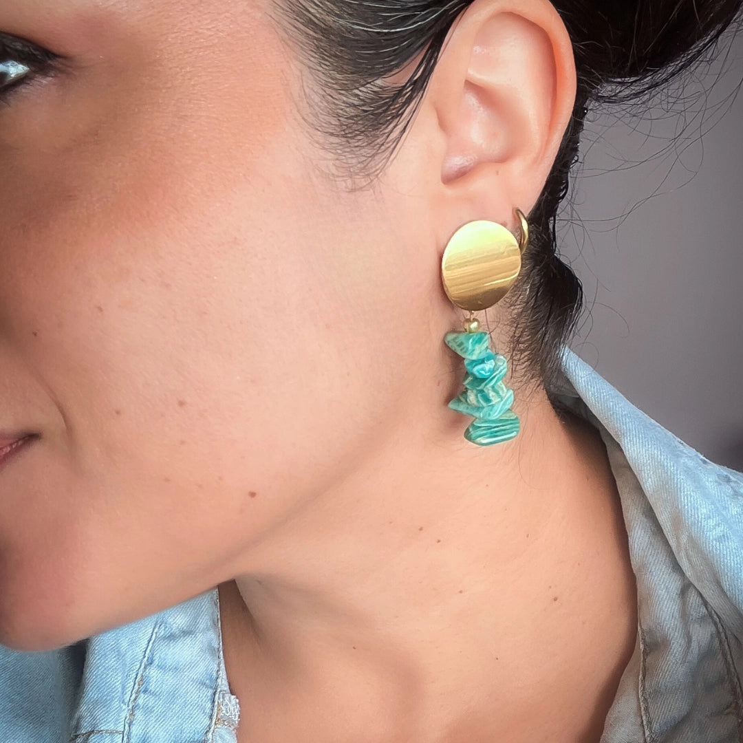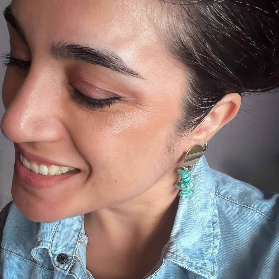 Son livianos, con harta presencia, y combinan perfecto con looks simples o con algo más boho. Los armé a mano, uno a uno, eligiendo las piedritas que más me gustaron.