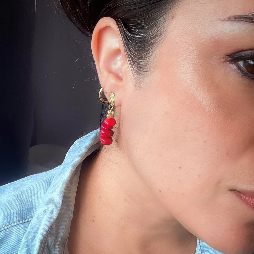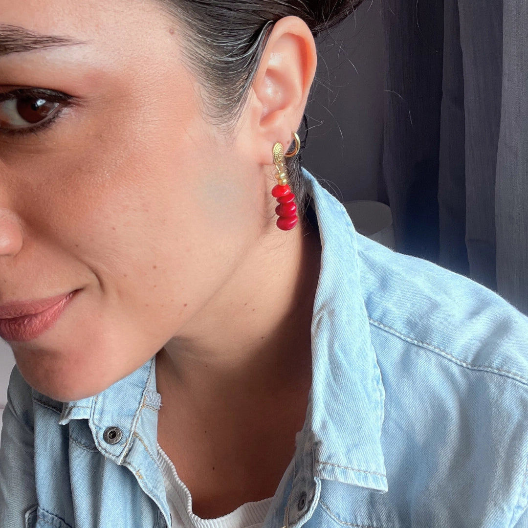 Estos Aros Túnez me fascinan por su color… el coral rojo tiene una energía cálida, vibrante, que me recuerda a los mercados y atardeceres del norte de África.
