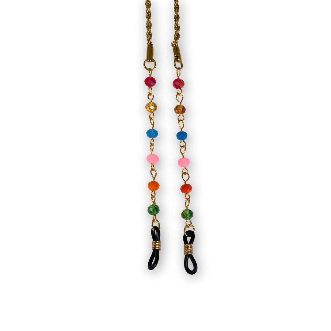Lo armé a mano con cristales de colores, para darle ese toque divertido y lleno de vida a tus lentes.