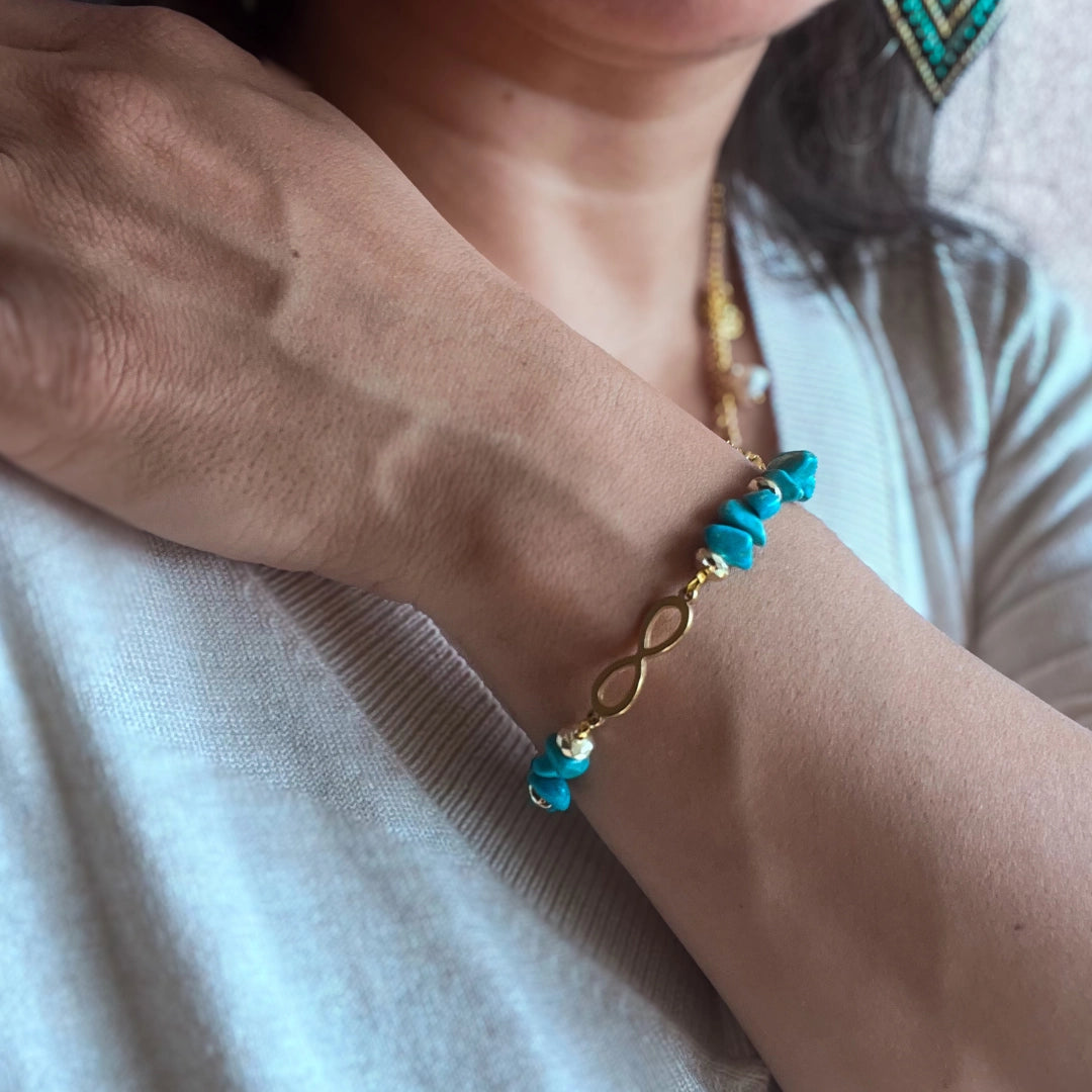 Pulsera Infinito Turquesa Bañada en oro 18k
